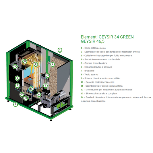 Caldaia policombustibile combinata legna/pellet Famar Geysir - 34 green / 46
